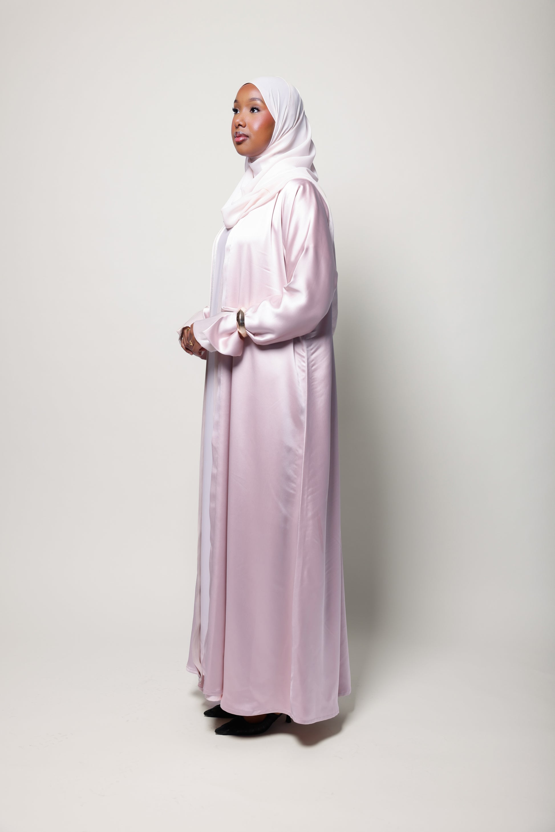 This abaya comes with matching hijab. The Fabric is soft Satin with soft organza fabric detailing to compliment the overall look.