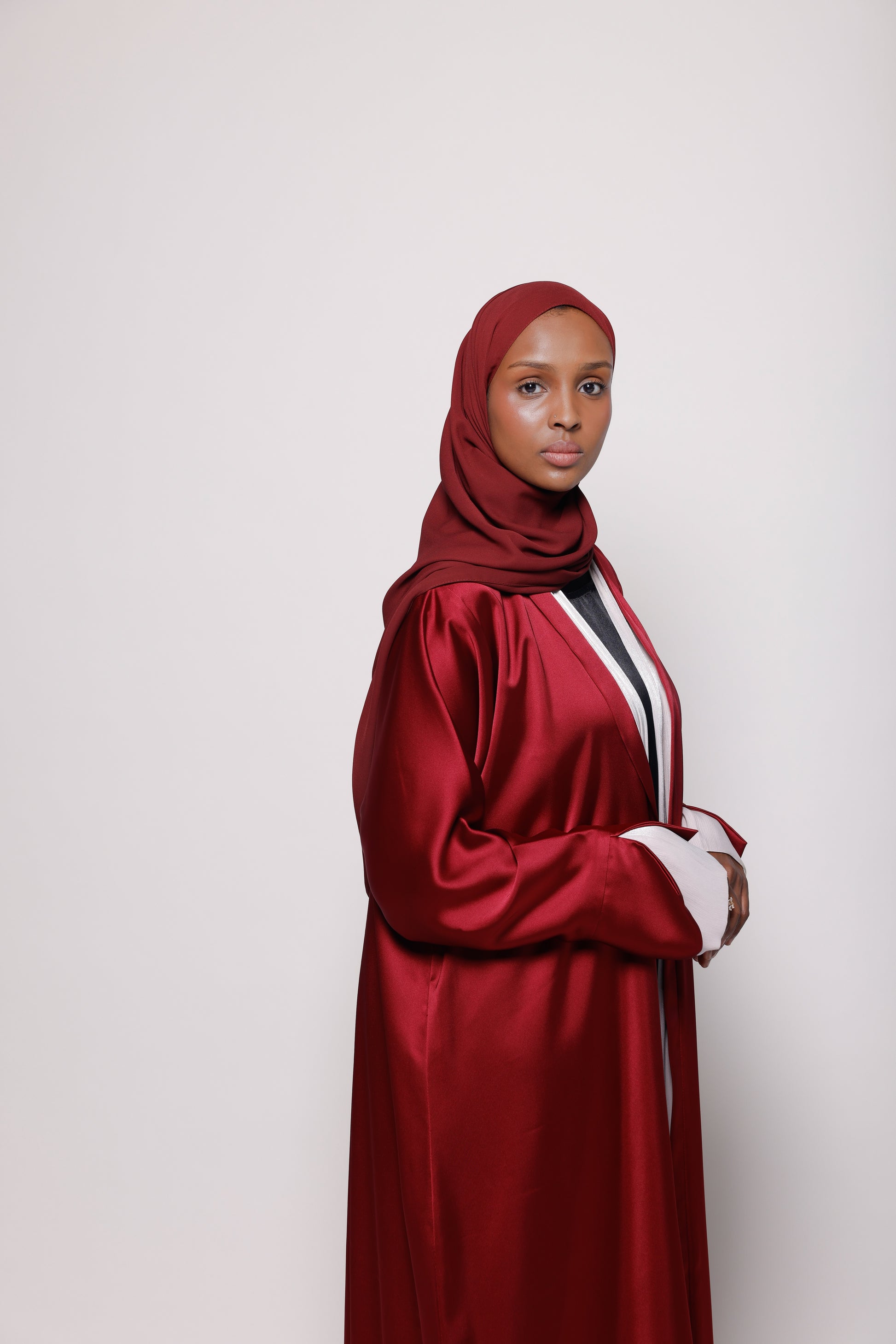 Burgundy Satin Abaya With Soft Hands Details