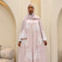 This abaya comes with matching hijab. The Fabric is soft Nada Crepe with shine flowers Lace on the front of the abaya to compliment the overall look.